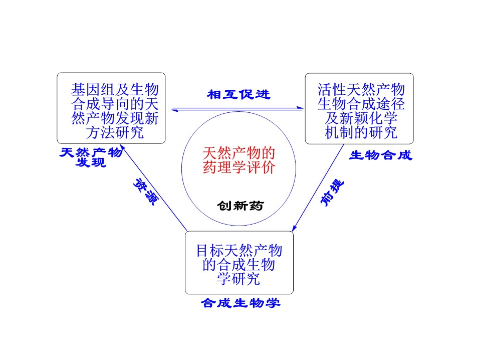 现代天然药物化学研究已经走过200多年的历史,在其发展过程中不仅对有机化学、生物化学、现代分析技术及用小分子作为探针的药物靶点发现产生了推动作用,更重要的是为现代药物治疗提供了大量的先导化合物。近年来由于现代分离,检测技术的应用,天然产物化学在微量及结构复杂成分的研究方面取得了一定的成就,但是由于大量出现的重复分离已知化合物的问题以及在分离上的盲目性使得其进一步发展遇到了瓶颈。而随着现代分子生物学技术的发展,人们采用分子生物学的手段在基因水平对天然产物的生物合成途径进行研究并积累了大量的天然产物生物合成信息。目前有大量的微生物及植物全基因组测序报道,这也使从10年前的基因组时代过渡到目前的后基因组时代。故未来天然产物研究的重要发展趋势是如何利用已有的生物合成知识积累及分子生物学技术来引导新天然产物的发现、如何利用已有的基因组数据获得新天然产物和发现新颖的天然产物合成酶、如何运用已有的生物合成基础和合成生物学的手段对合成途径进行设计与构建并高效获得天然产物的结构多样性,为天然药物化学这门古老的学科注入新的活力。 研究组依托国家重点实验室,充分利用我国特有的植物及微生物资源,针对天然产物发现、生物合成和合成生物学,紧紧围绕创新药的研发,开展如下三个串联并互补的方向的研究: · 开展基因组导向、天然有机化学、生物合成学驱动的特殊放线菌天然药物先导发现及新方法研究。 · 活性天然产物生物合成途径中酶催化的新颖机制研究。 · 目标天然产物的合成生物学研究—合成途径的设计、构建、表达与优化。