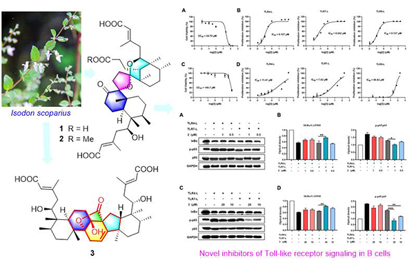 Discovery and biological evaluation of dispirocyclic and polycyclic ent-clerodane dimers from Isodon scoparius as novel inhibitors of Toll-like receptor signaling