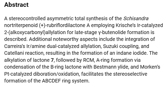 Ir-Catalyzed, Stereoselective Total Synthesis of (+)-Rubriflordilactone A