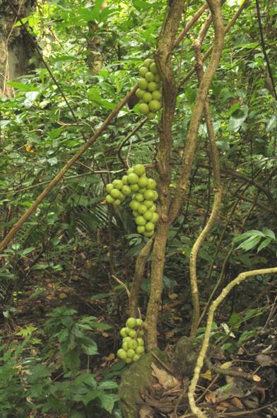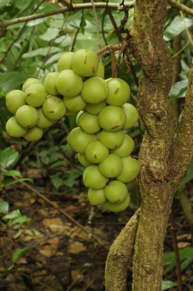 大果五味子Schisandra macrocarpa Q. Lin & Y. M. Shui是中国科学院植物研究所与中国科学院昆明植物研究所近期合作发表的新类群。本种产于云南东南部个旧、河口、马关、文山交界一带热带地区,为木质大藤本, 老茎生花现象明显。木质大藤本、老茎生花、滴水叶尖、大板根并为热带雨林四大特征,这从另一方面也说明了云南东南部低海拔地区的热带雨林极为典型的事实。 本种于上世纪90年代曾采到大量无花无果的凭证标本,及为数不多的几份带果的标本,往往错误地被放在防己科等,后通过仔细检查国内几大标本馆的存疑标本,才发现其中还有一份是冯国楣先生1947年采于文山的带花标本,才使得本种现出庐山真面目。2011年9月的大围山综合考察又发现了本种的芳踪(见图)。本种为多年生木质大藤本,高可达10多米,且结实众多,实为不可多得的木本经济种源。 Lin Q., Shui Y. M. and Yang Z. R. 2011. Schisandra macrocarpa (Schisandraceae), a New Species from Yunnan Province, China. Systematic Botany 36 (3): 595–599.