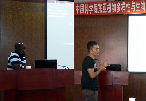 Yorou博士做了题为“西非棉革菌属的多样性、解剖及分子系统发育”及“西非大型真菌多样性与保护状况”的学术报告,与会者首次认识了众多西非特殊的大型真菌、资源状况及其研究保护的紧迫性。魏杰博士做了“内蒙古地区油松外生菌根多样性研究”的学术报告,使与会者对我国北方重要树种油松外生菌根的形态结构特征及多样性有了把握。 报告引起了与会者的极大兴趣,他们就自己的研究问题与报告人进行了热烈的讨论和交流。访问期间,杨祝良研究员还与来访客人进行了交流,达成了今后合作研究西非高等真菌的意向性协议。